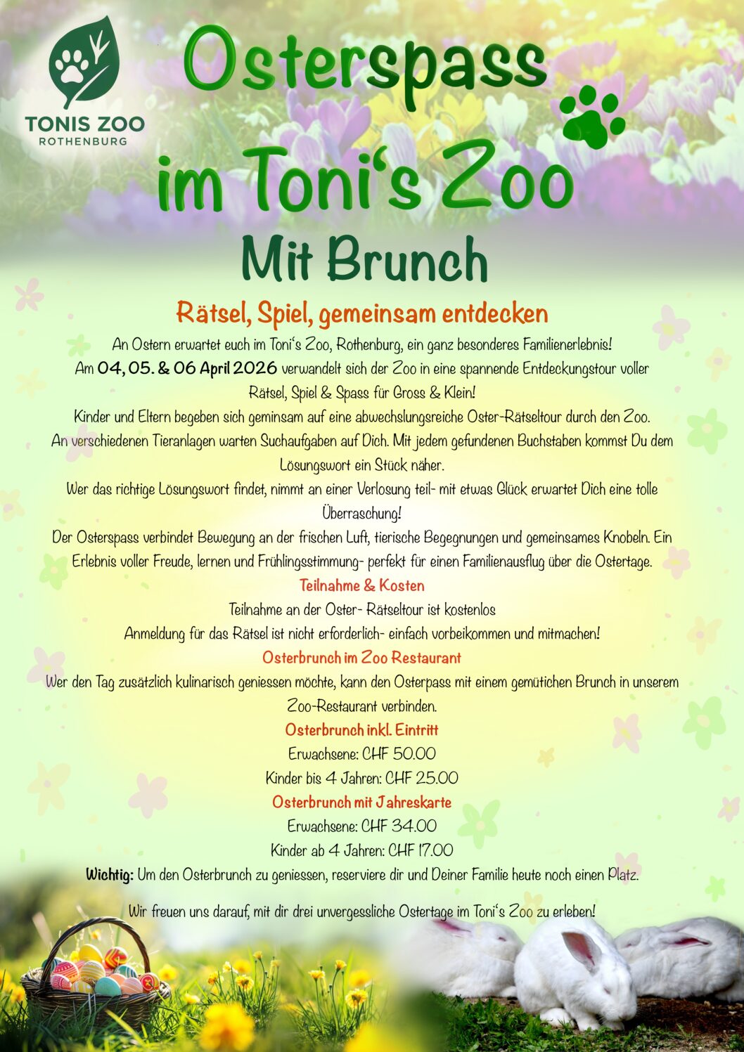 🥐 Dazu passend: ein gemütlicher Osterbrunch im Zoo-Restaurant.